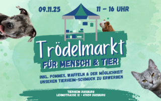 Trödelmarkt 09.11.2025 Trödelmarkt im Tierheim Duisburg – am 09.11.2025! 🎉 Ihr liebt Schnäppchen und Tiere? Dann merkt euch den 09. November 2025 schon mal vor! Von 11:00 bis 16:00 Uhr findet unser beliebter Trödelmarkt für [...]