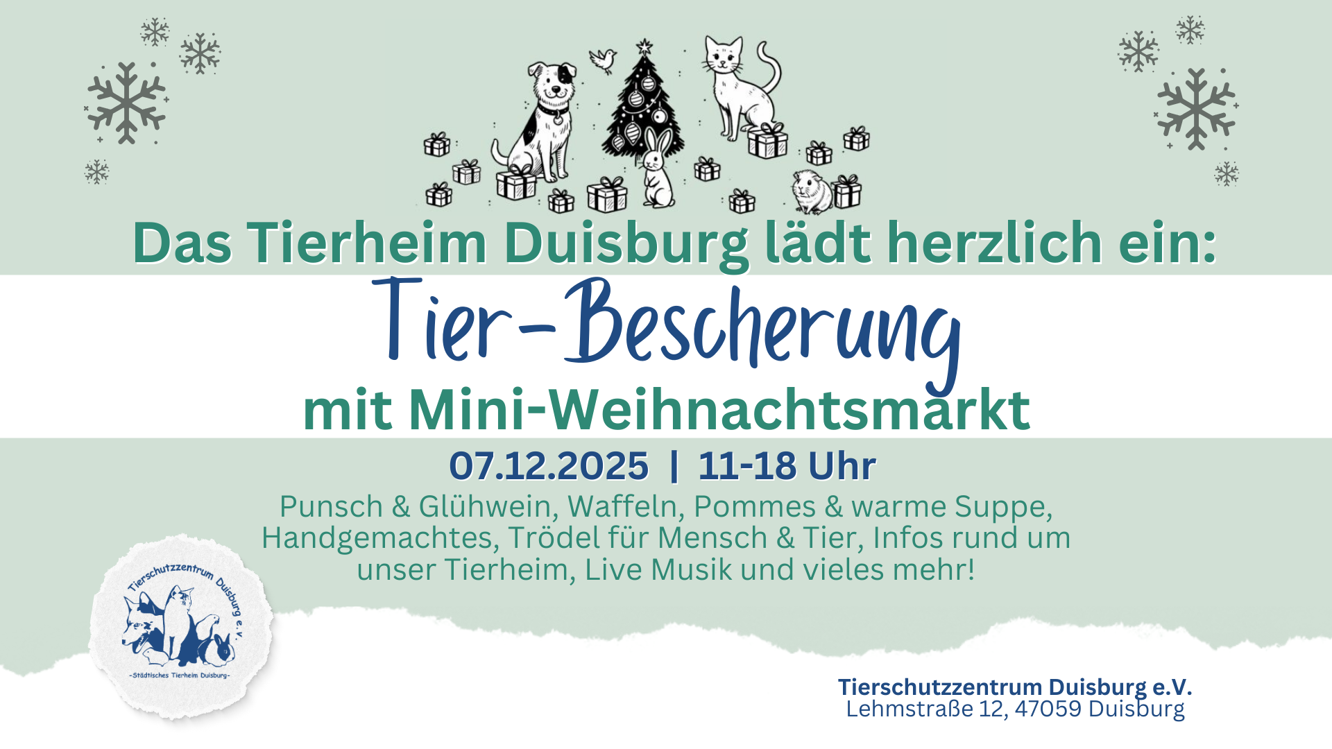 Also, kommt vorbei, genießt die festliche Atmosphäre und lasst uns gemeinsam dafür sorgen, dass auch unsere Tiere ein schönes Weihnachten erleben dürfen!