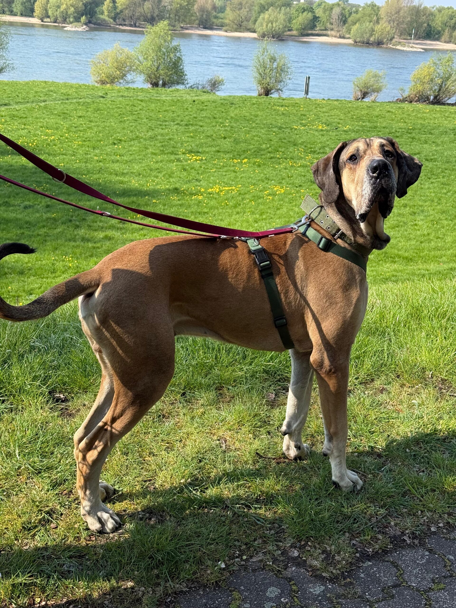 Trainingsstand: Ragnar ist ein fröhlicher, energiegeladener junger Rüde, der klare Strukturen und konsequente Führung benötigt. Er hat in seinem alten Zuhause vermutlich nicht viel gelernt und war bei seiner Ankunft sehr verunsichert. Da er anfangs in Frontalbegegnungen mit Menschen einen Satz nach vorne gemacht hat haben wir Ragnar hier bei uns an einen Maulkorb gewöhnt, den er in engen Situationen trägt. Mittlerweile lässt er sich gut managen und hat verstanden, dass die Menschen garnicht so schlimm sind. Mit Hunden hat er kein Problem, stoßt aufgrund seiner Größe aber oft auf Ablehnung. Ragnar läuft artig an der Leine, kennt die Grundkommandos und ist mit seinen Bezugspersonen ein echter Schatz. Er ist wie die meisten Doggen sehr sensibel und orientiert sich gut am Menschen.