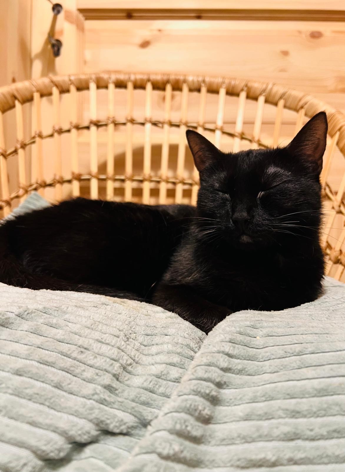 Sie ist keine klassische Schoßkatze, liebt es aber sehr, nachts unter der Decke eng an ihren Menschen gekuschelt zu schlafen. Außerdem hat sie eine große Vorliebe für Höhlen, die sie sich meist selbst aus Decken baut.