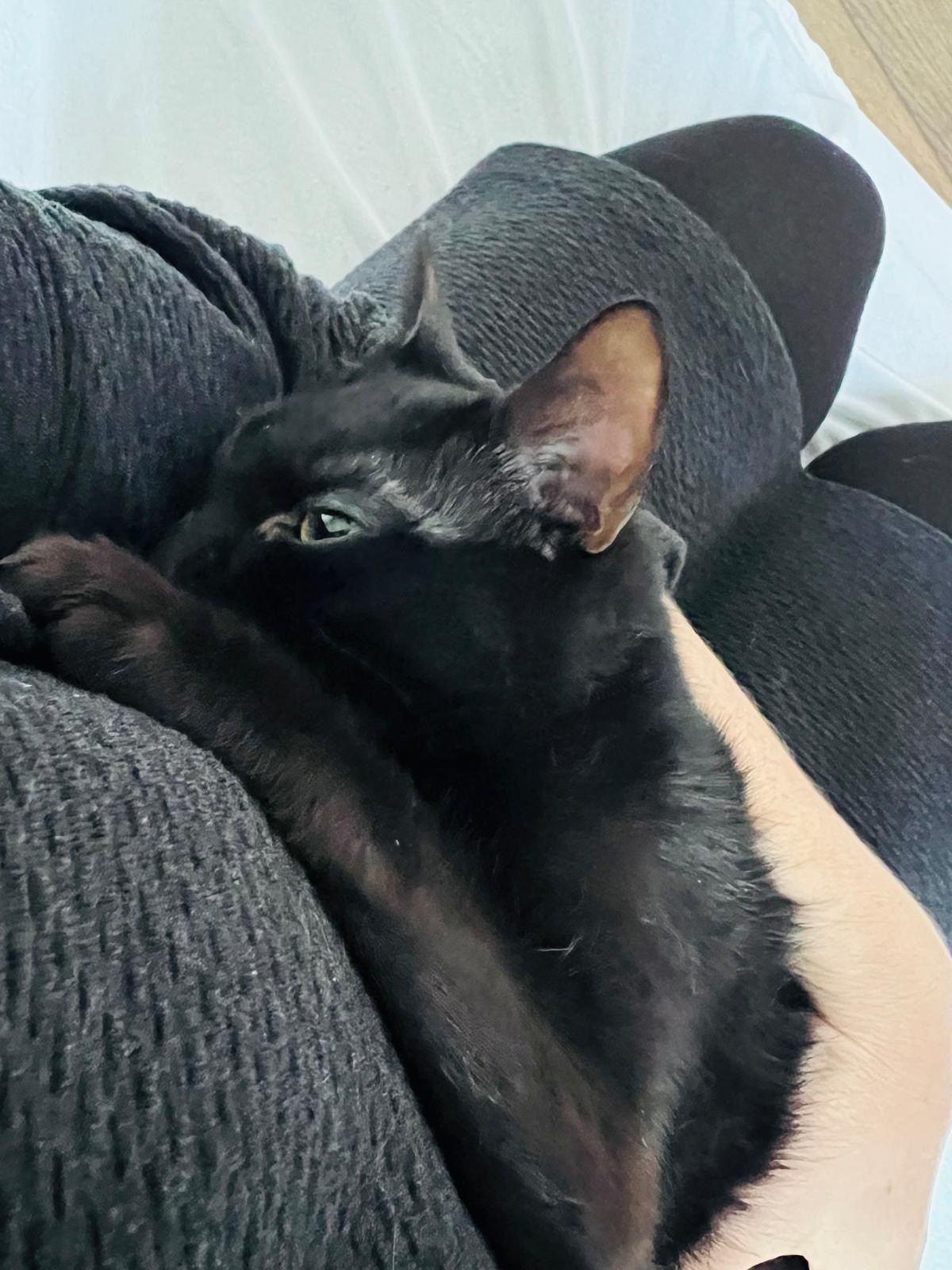 Charakterlich ist Mira eine ganz besondere Katze: Sie ist sehr anhänglich, verspielt und agil, dabei aber oft etwas nervös. Sobald jemand aufsteht oder zur Tür hereinkommt, ist sie sofort auf den Beinen und möchte wissen, was passiert. Mira ist aufgeschlossen, gibt liebend gern Köpfchen, genießt täglich ihren ausgiebigen „Big Stretch“ und erzählt ihrem Menschen gern in Form von leisen Gurrlauten – fast wie ein kleines Täubchen.