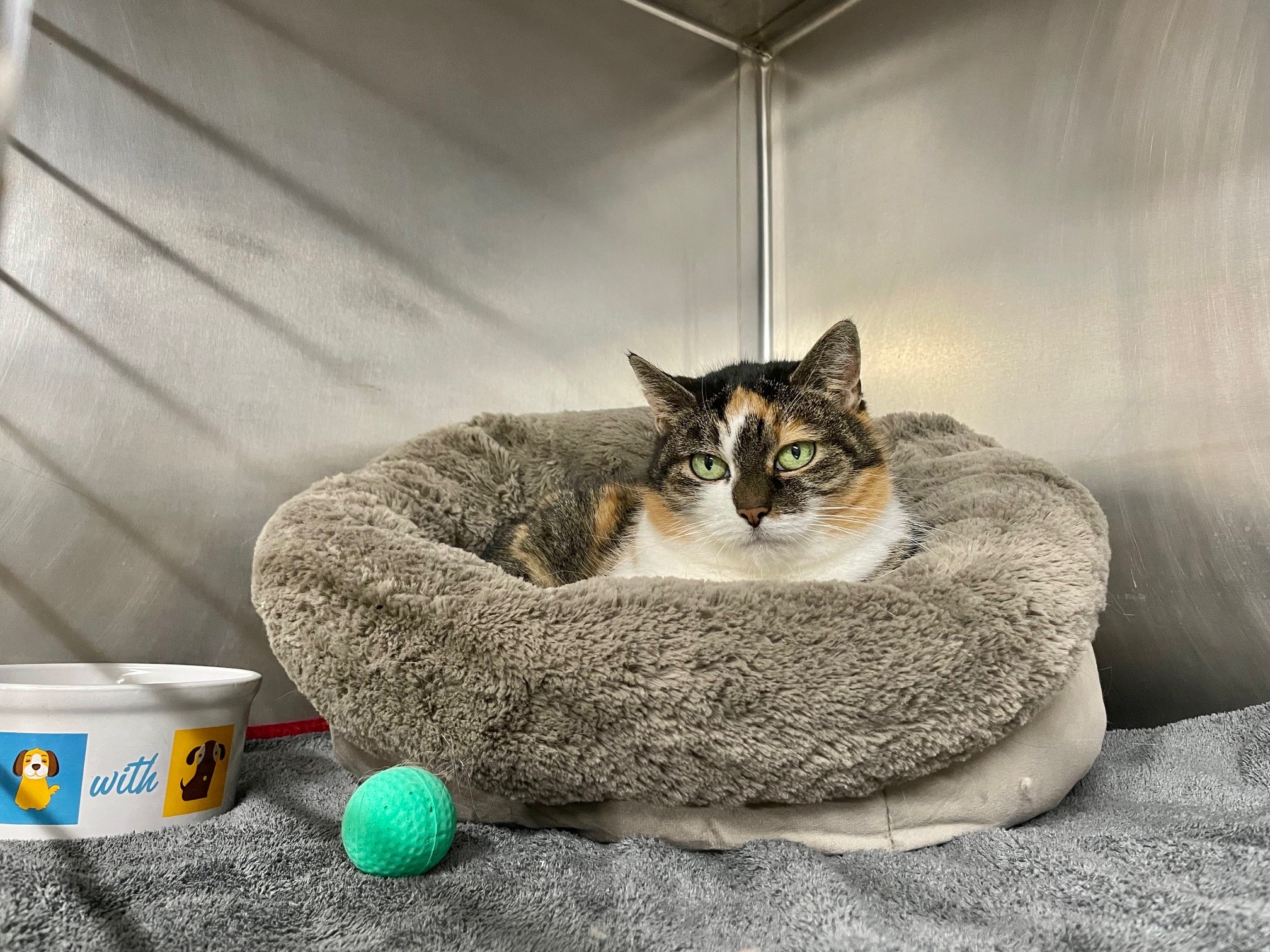Wanda ist eine besondere Katze mit Geschichte: Anfang 2024 kam sie zu uns ins Tierheim. Damals haben wir sie als offene Katze wahrgenommen, die Streicheleinheiten genossen hat, aber schon damals ihren eigenen Kopf und Charakterzüge zeigte. Sie wurde in ein Zuhause vermittelt. Leider kam sie vor kurzem wieder zu uns zurück, da sie dort aggressive Tendenzen zeigte. Warum genau das der Fall war, können wir nicht sicher sagen.