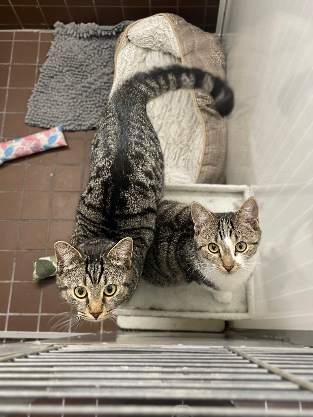 Hallo ihr Menschen da draußen! Wir sind Cheeky (getigert) und mein Bruder Rex (getigert mit weiß) – zwei ungestüme Wirbelwinde auf vier Pfoten, die dringend ein Zuhause suchen, in dem Action, Spaß und Kuschelzeit gleichermaßen erlaubt sind.