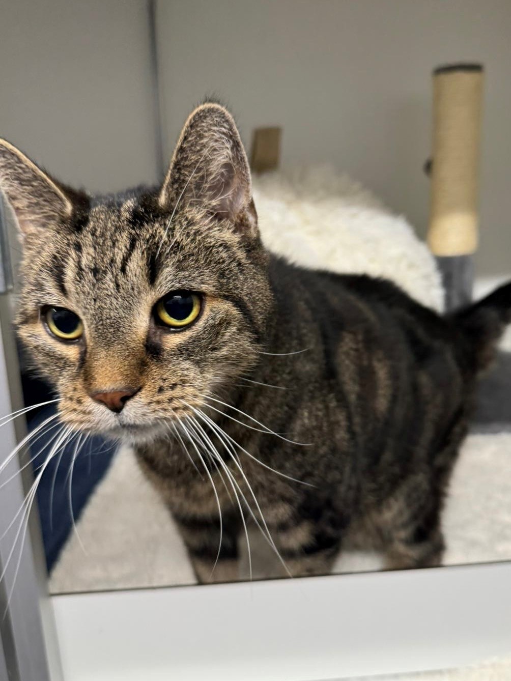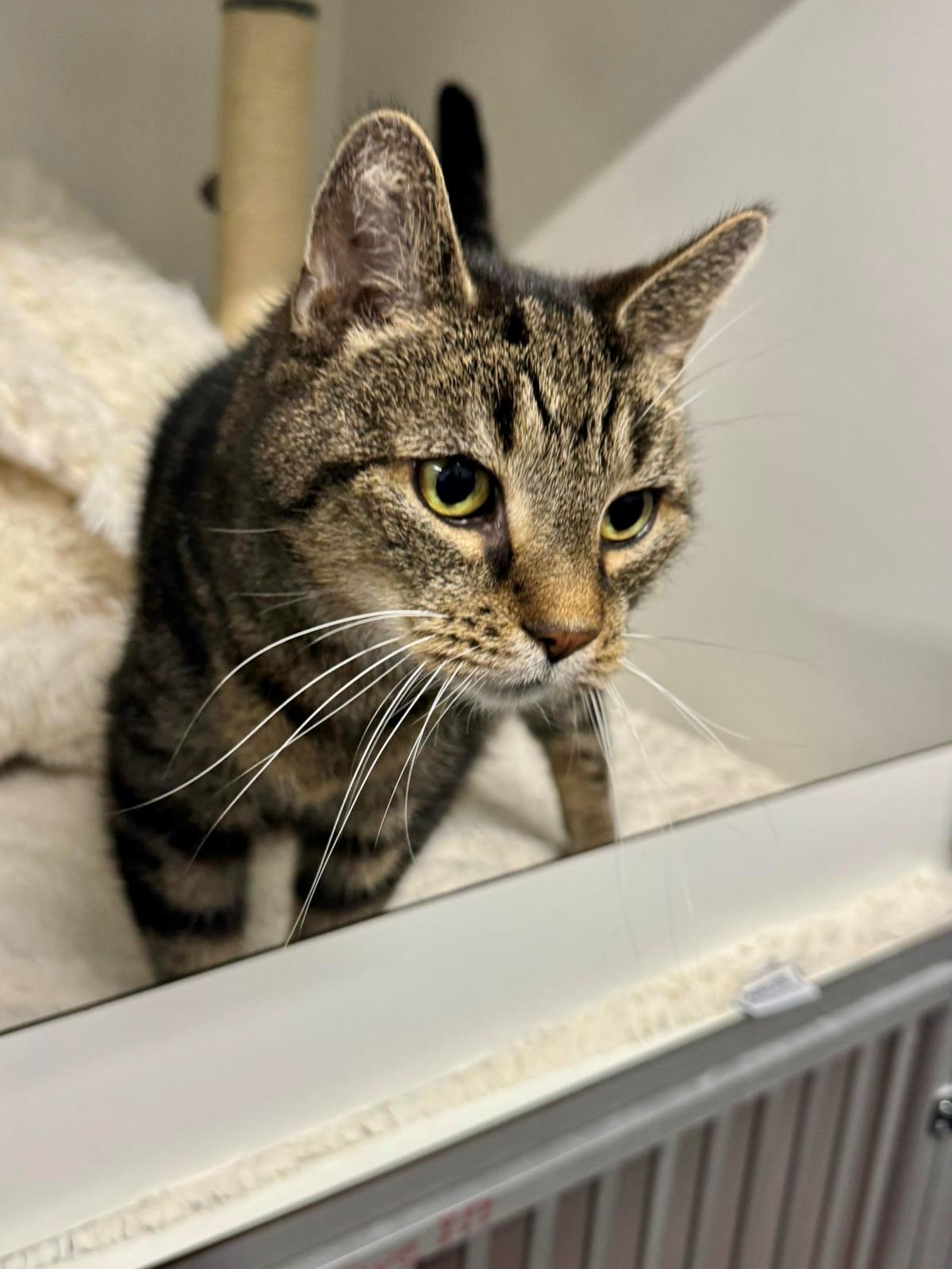 Man schätzt, dass ich ungefähr 10 Jahre alt bin – ein ruhiges, gelassenes Alter, in dem man genau weiß, was man mag. Ich komme aus einer Beschlagnahmung und habe mein Leben bisher wahrscheinlich in reiner Wohnungshaltung mit mehreren Katzen verbracht. Heute wünsche ich mir aber etwas ganz Besonderes: ein Zuhause nur für mich.