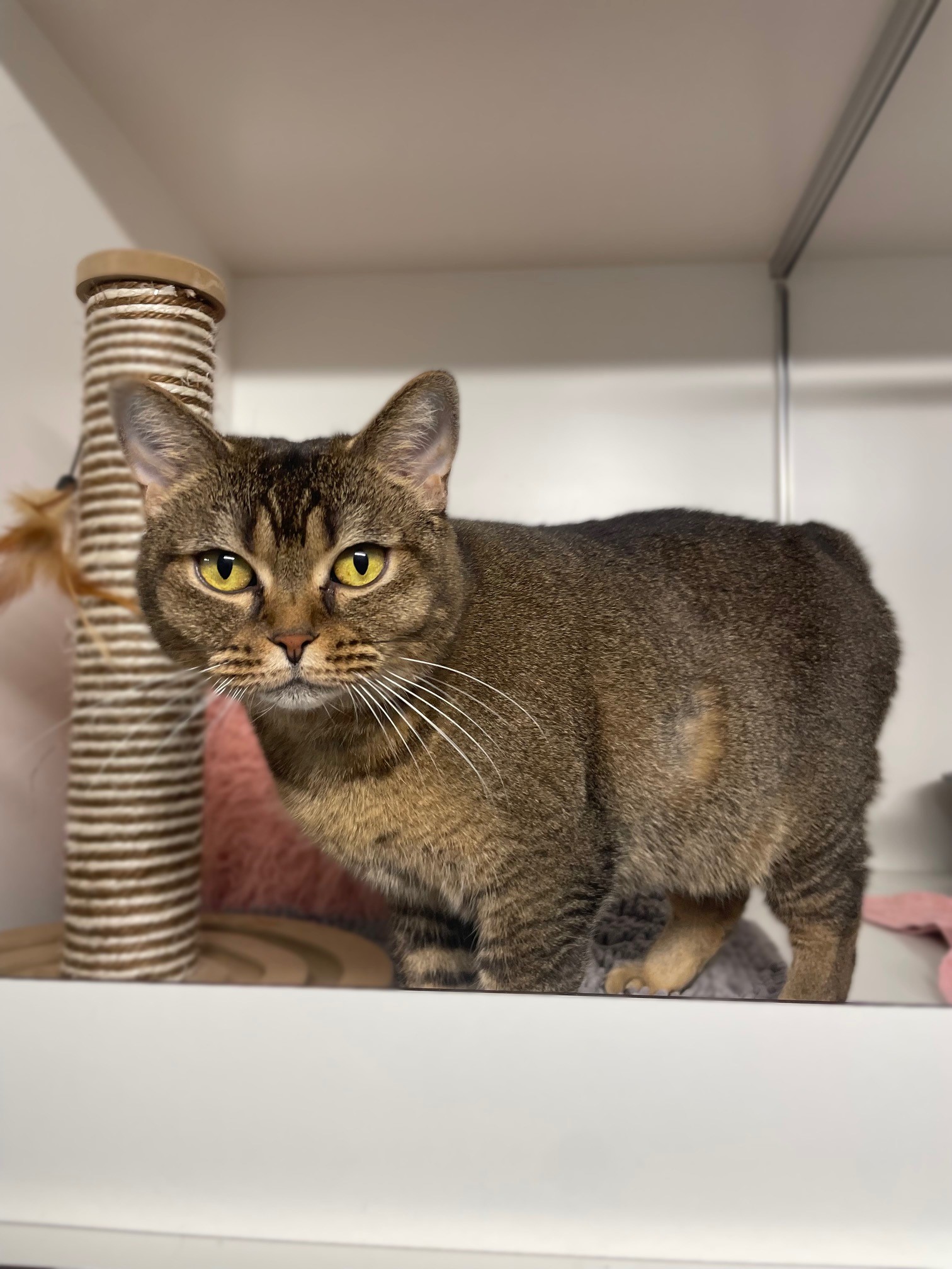 Aktuell ist Tickie bei uns einzeln untergebracht. Ein Versuch, sie wieder ins Katzenhaus zu integrieren, scheiterte nach einer Rauferei mit einer anderen Katze, daher möchten wir sie derzeit als Einzelkatze vermitteln. Im Katzenhaus zeigte sie sich zwar anfangs nicht unverträglich, aber auch nicht besonders interessiert an anderen Katzen. Nach der Kittenzeit ist sie eher auf Ruhe bedacht, bis ihr Temperament sich stabilisiert.